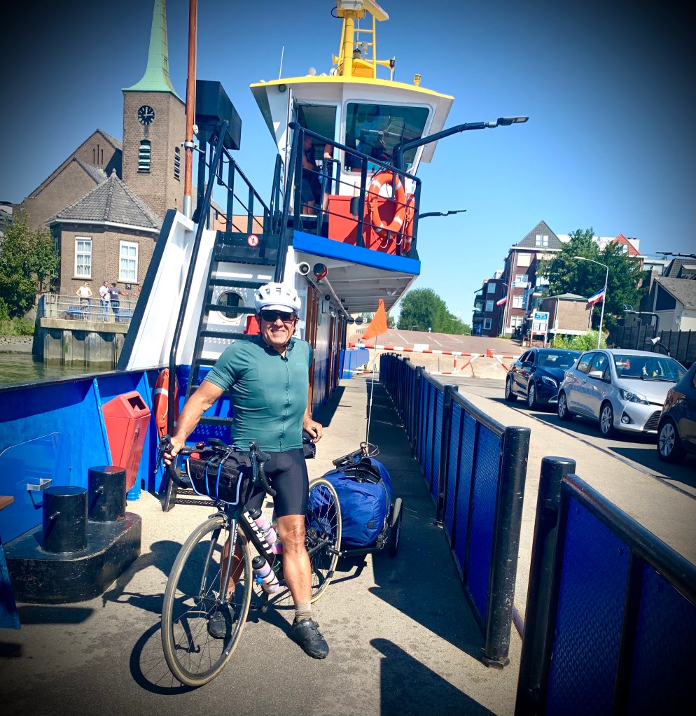 After Gouda we rode for three straight days to Belgium. The riding was very nice on wide paths along the many canals. We took our first ferry crossing. We really appreciated how the biking infrastructure was integrated in with the sidewalks and streets. In the Netherlands bikes are generally given the right-of-way over cars.