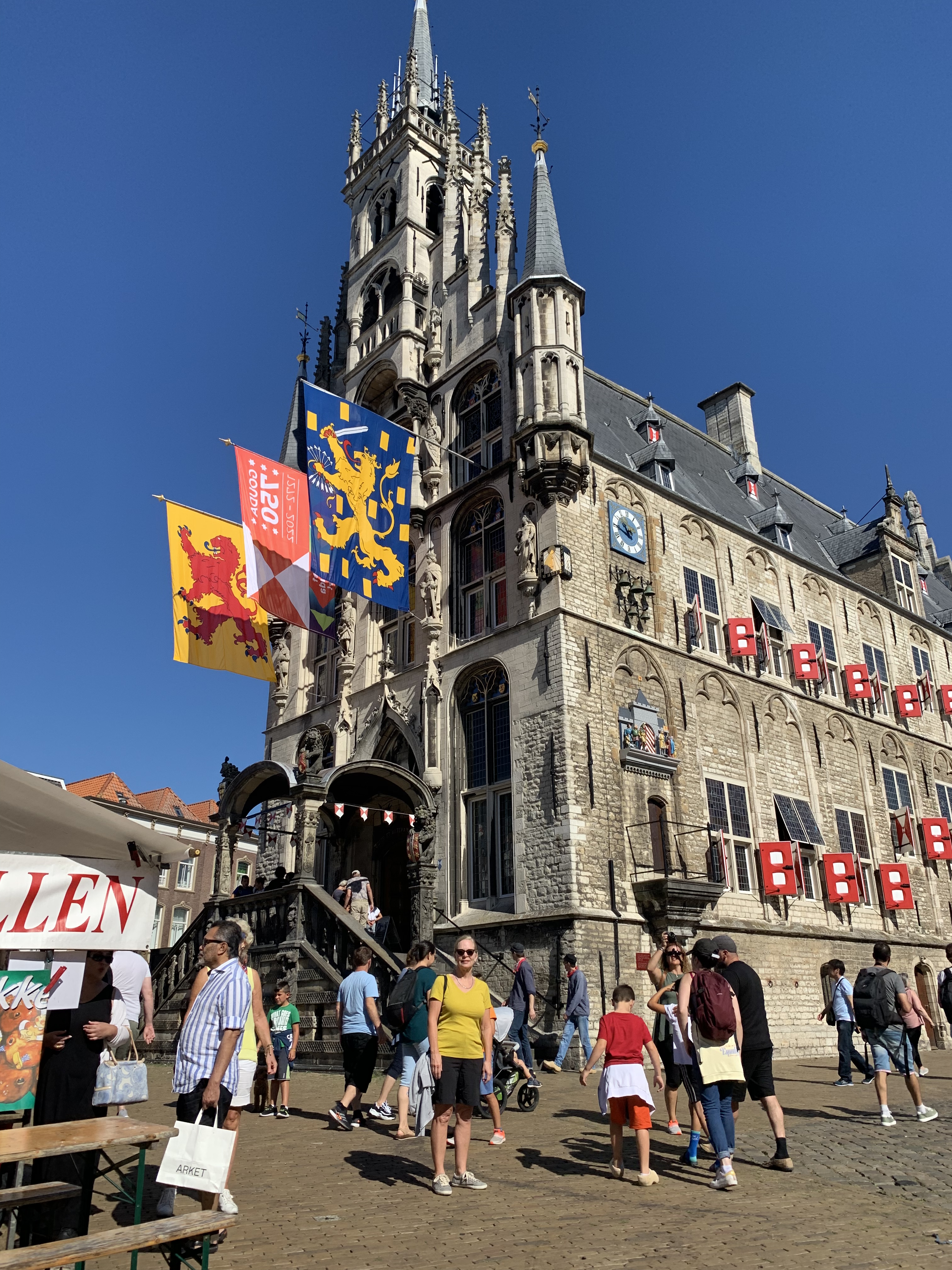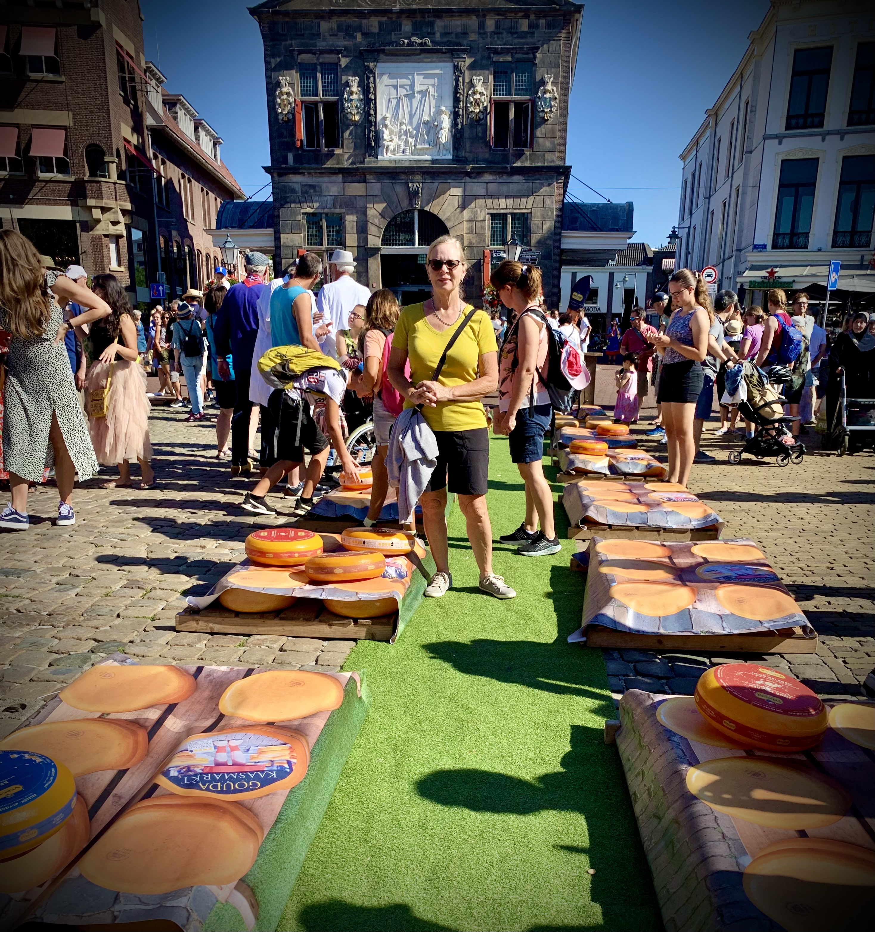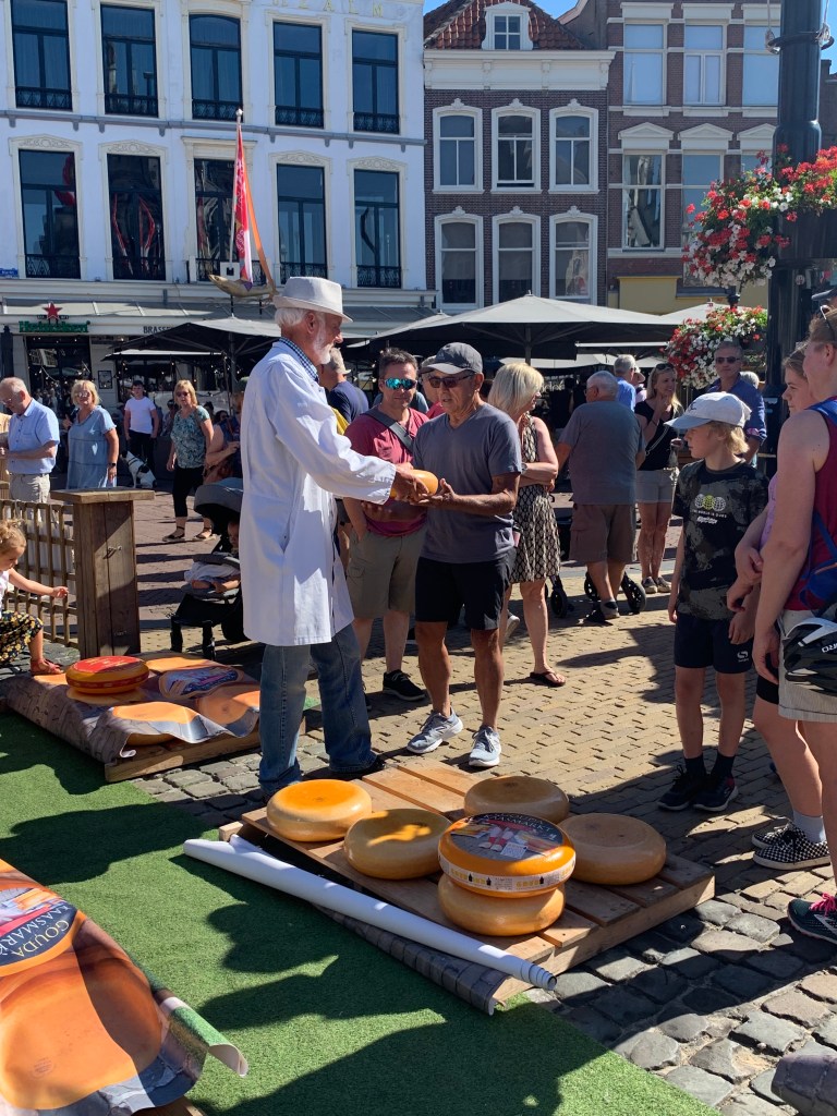 After four days we were ready to move on so we packed up and rode to Gouda. Yes, like the cheese except that in Danish it’s pronounced “Howda” (the town and the cheese). On our second day, we got to see their cheese market that takes place once a week. The cheese merchants set up in the main square to sell their product. I think that the serious cheese business is handled early and by mid-morning it’s mostly tourists.