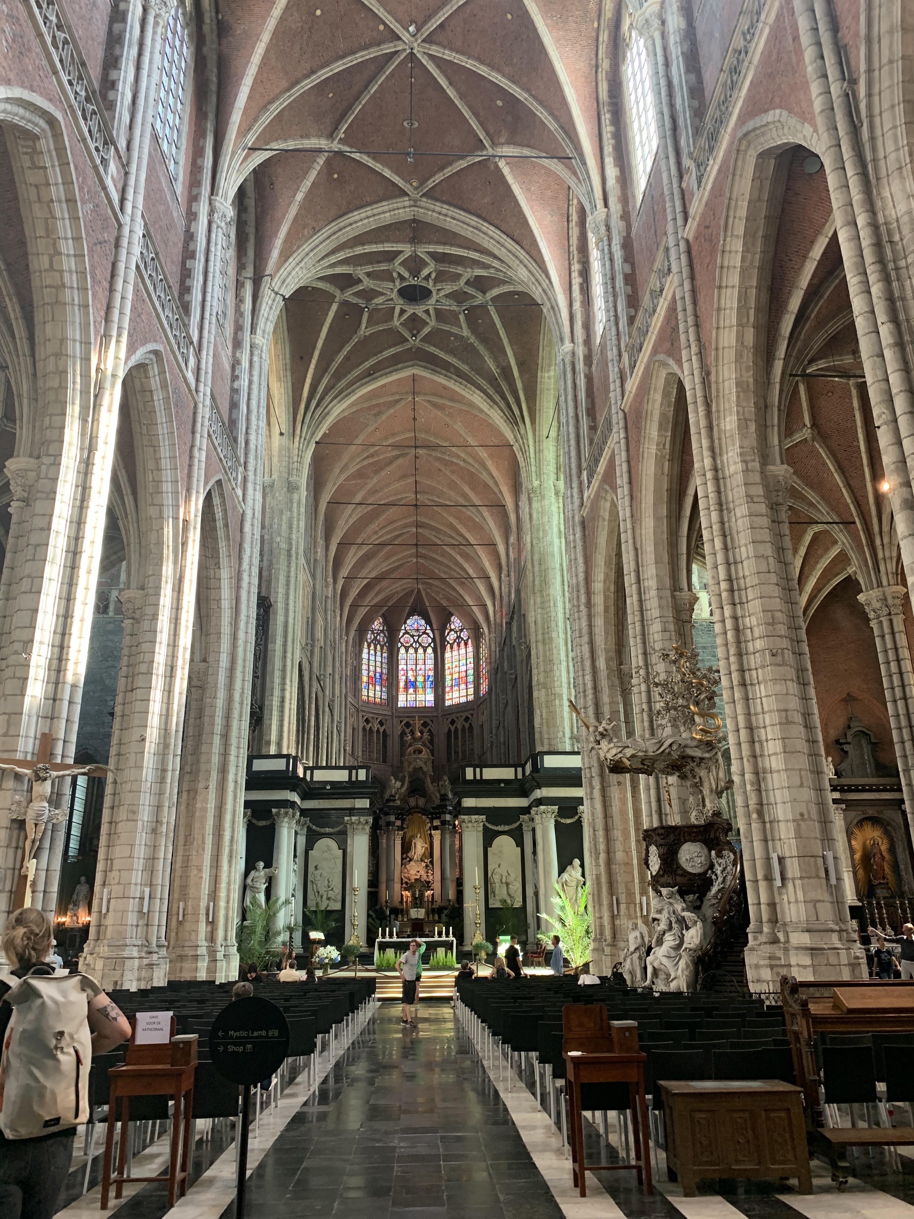 The Saint Bravo Cathedral (Catholic) and Saint Nicholas’ Church (Protestant) were beautiful examples of the difference between the ornate cathedral and the much more modest church. While both were quite large and had soaring ceilings, the cathedral was highly decorated. The pictures were shot from the Belfry.